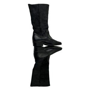 Markon Women's Suela Black Leather Boots W/Floral Embossed Suede Size 7W