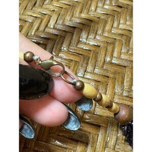 The wooden clasp adds a touch of natural beauty, offering a sophisticated yet earthy appeal.