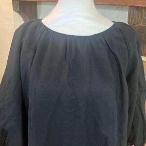 Marks & Spencer Black Puff Sleeve Linen/Cotton Mini Smock Dress, size 16