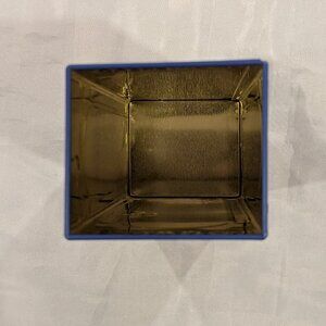This tin is in very good condition, with just a tiny bit of paint worn away at the tips. There are no dents in the metal. The top fits on the main part of the tin easily and securely. It has been washed and has no smells. Please note that there is leftover residue from the tape that was (originally) used to secure the top to the bottom. That residue is not sticky, but is visible as sort of a white film (see photos). It would probably come off with Goo Gone. There is also a gold "Best Before" sticker on the top. That can probably be scraped off.