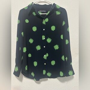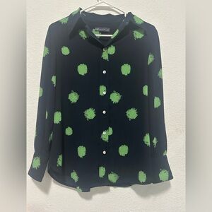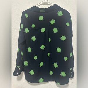 Marks & Spencer Navy Blue with Green Button Down Long Sleeves Blouse size 12