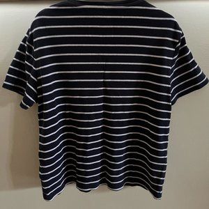 Heavyweight cotton men's crew-neck tee-shirt, navy with white stripes.