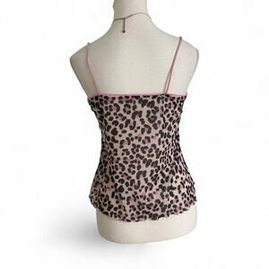 Marks & Spencer Pink Leopard Print Lace Trim Y2K Vintage Cami Top Bow Size M