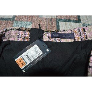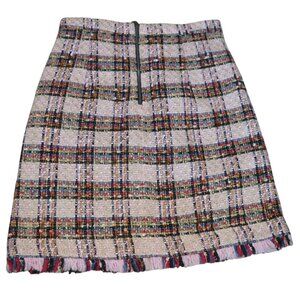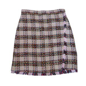 Marks & Spencer Pink Mix Tweed Skirt Size 6 Faux Kilt Tartan Plaid Check Fringe