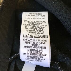 68% acrylic, 30% polyester, 2% elastane/lycra, see tag