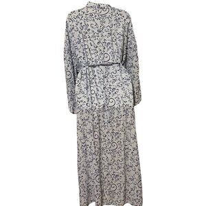 This Marks & Spencer St Michael long robe is a must-have for any woman who loves comfort and style. The light and dark blue colors give it a chic and classic look, while the tie closure and V-neckline add a touch of elegance. It's made of viscose material which is machine washable for easy care.