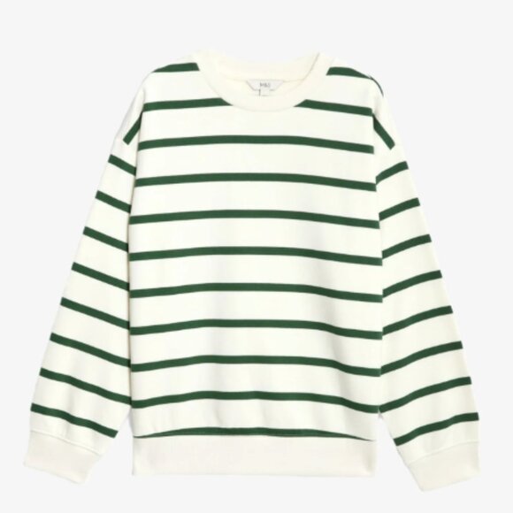 Marks & Spencer Women's Cotton Rich Striped Sweatshirt Long Sleeve Top Green