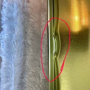 Tin is in good condition. There are two dents on the bottom side that can be seen on the outside and the inside of the tin and one top indention on top corner. Please see photos for condition.