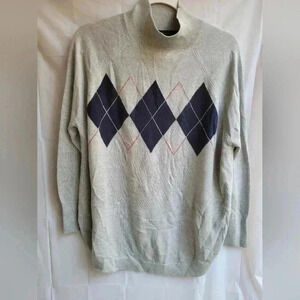 Marks and Spencer women's grey diamond pattern longline mock turtle neck jumper