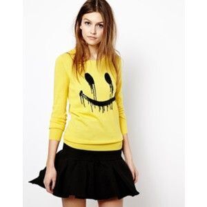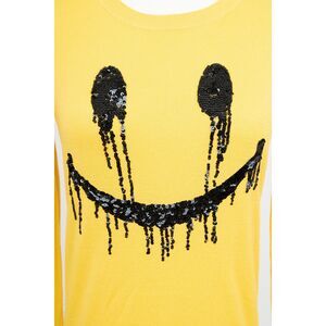Markus Lupfer Beaded Smily Face Yellow Wool Sweater Size S