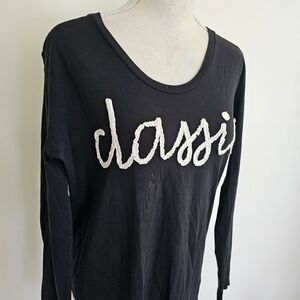 Markus Lupfer black long sleeve t-shirt dress with cursive "Classic."