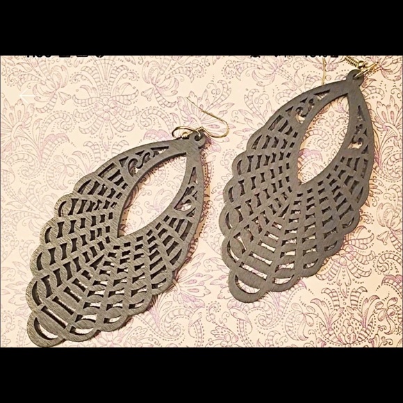 Large Boho Wood Earring Trendy Gray