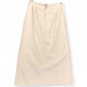 Marla Kim Skirt Sz XL Beige Linen Cotton Blend Midi Modest Slit Career Chic