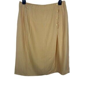 Marla Kim Vintage 90s Yellow Side Buttons Midi Modest Elastic Waist Skirt L