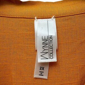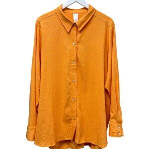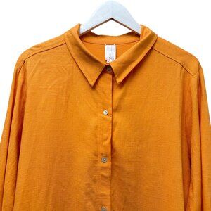 Marla Wynne Boyfriend Shirt Plus Size 2X Linen Blend Orange Button Up Tunic Top