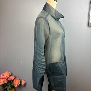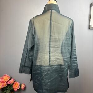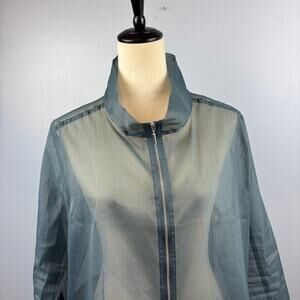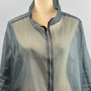 Marla Wynne Chico's Organza Dusty Blue Sheer High Neck Zip Jacket Pockets Medium