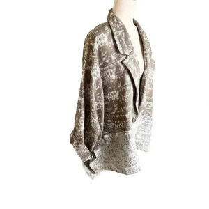Marla Wynne Jacket Sz L Oversize Drapey Taupe Kimono Tapestry Jacquard Lagenlook
