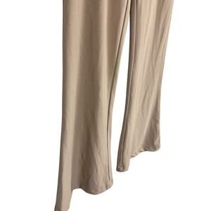 The Marla Wynne Layers Flare Beige Tan Pull On Stretch Pants in size S offer a comfortable and stylish option for casual occasions or travel. Made from a knit polyester blend with spandex for stretch, these high-rise pants feature a flared leg style and side pockets for added convenience. With an elastic waist for a comfortable fit, these dress pants by Weissman come in a solid beige color, making them versatile for any season. Easy to care for with machine washable fabric, these pants are a practical and fashionable addition to any woman's wardrobe.
