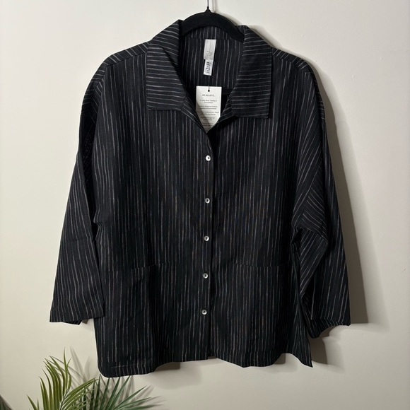 Marla Wynne Linen Black Stripe Button Shirt Top Large NWT