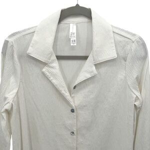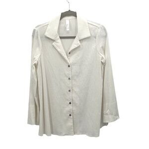 Marla Wynne Womens Crepe Textured Long Sleeve Button-Up Blouse Ivory Small