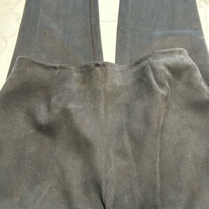 Sleek and stylish black dress pants in a super fine ultra suede material. Perfect for multiple occasions. Comfortable fit by MarlaWynne. The photos don’t do these pants any justice. They are absolutely gorgeous and super comfortable. Great stretch.