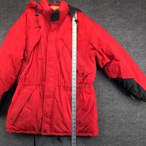 Marlboro Country Store Men's Down Hooded Puffer Jacket Red Medium Vintage