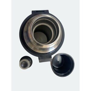 Keep beverages hot or cold for hours with this durable stainless steel vacuum bottle. Includes insulated cap that doubles as a cup and a secure handle.
