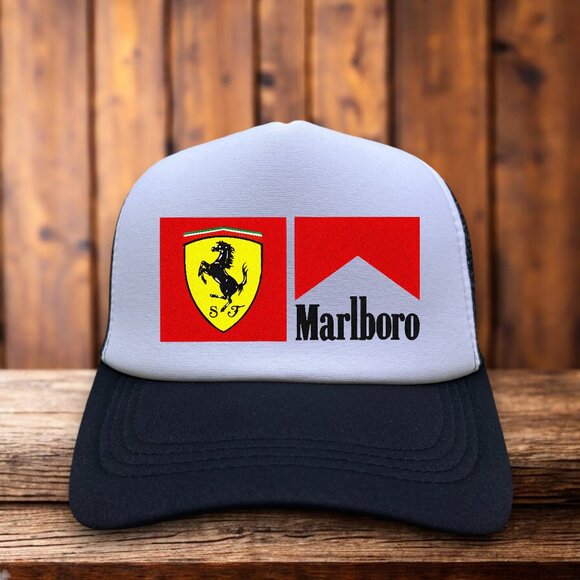 Marlboro Ferrari Mens Trucker Hat Black Snapback Motorsport Nostalgic Ball Cap