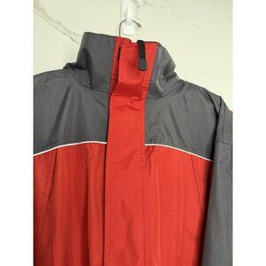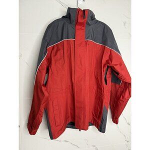 Marlboro Red Jacket Hooded Black Polyester Lined EUC Large Rain Ski Outdoors