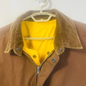 Marlboro Vintage Reversible Long Raincoat Brown Yellow Pockets Zip Closure Sz M