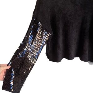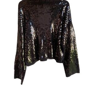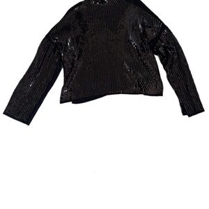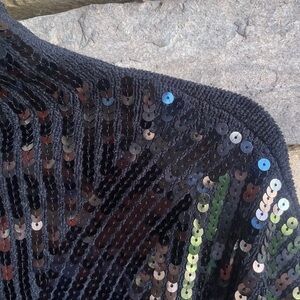 Elegant black top with shimmering sequins. Perfect for evening wear. Sequined front
