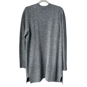 Warm and comfy-cozy gray cardigan sweater. Stretchy and longer in length. Acrylic/Nylon/Polyester/Spandex. Some pilling, otherwise excellent used condition. Size L.