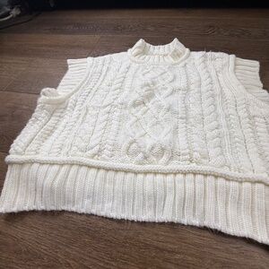 Marled Cream Cropped Sweater Vest Textured Size M Warm Fall Winter