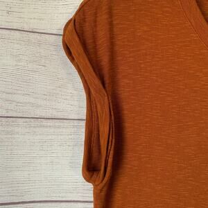 Marled Essentials Burnt Orange Tee Shirt with Folded Cuff Short Sleeves Size M