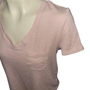 Marled Essentials Womens Pink V-Neck T-Shirt With Pocket 58% Cotton 39% Modal 3%