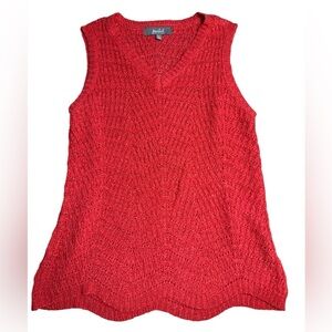 Marled Chic and versatile sleeveless sweater tank in a vibrant red knit. Features a textured pattern, V-neckline, and relaxed fit for effortless layering or standalone wear. Crafted from a soft and durable 60% acrylic, 40% nylon blend. Size Medium. Excellent pre-owned condition with no flaws.