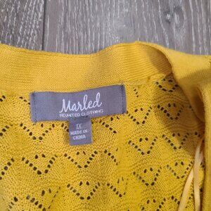 Marled Reunited Clothing Mustard Yellow Knit Long Open Front Duster Cardigan 1X
