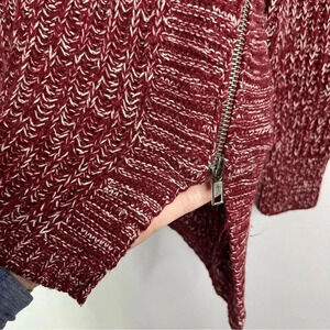 Marled Reunited Heather Red Side Zip Crewneck Sweater S