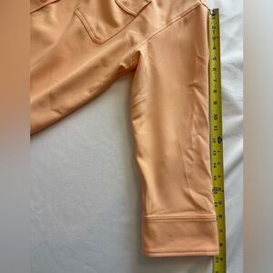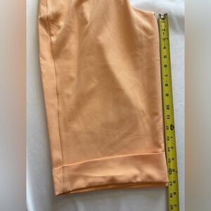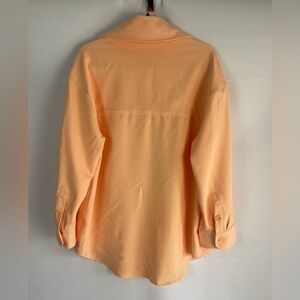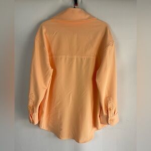 Stay effortlessly chic in this soft peach matching set from Marled Reunited Clothing. The Ludow shirt jacket (size Medium) features a structured silhouette with button-down front and utility-style chest pockets. Paired with size 4 Bermuda shorts featuring pleated front detail and a tailored fit.