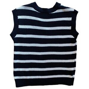 Marled Striped Sweater Vest Top Sz S Black Dark Academia Preppy Old Money Coast
