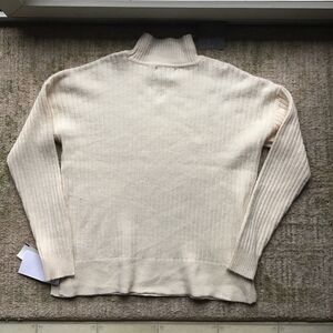 Marled Sweater Womens S Ivory Fuzzy Knit Mock Neck Pullover Stretch Cozy Soft