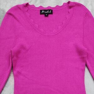 Marled Sweater Womens S Pink Scalloped Scoop Neck Ribbed Stretch Knit Pullover