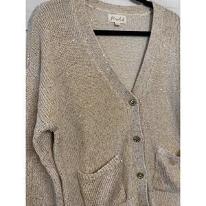 Marled Sz LG Cardigan Sweater Knit Front Pockets Gold