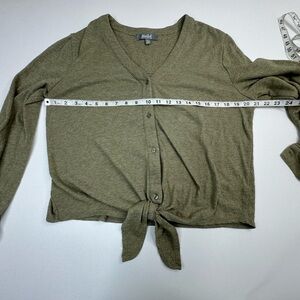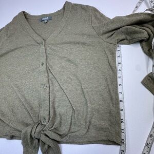 Marled Tie Front V Neck Convertible Sleeve Light Stretch Army Gray Green Blouse Womens Medium
