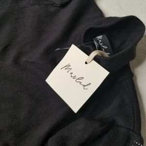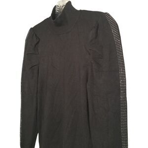 Marled Womens Black Knit Bling Puff Sleeve Mock Neck Sweater Small Whimsigoth