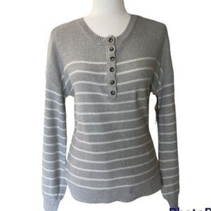 Marled by Reunited Clothing Sweater Women's Size M Grey Striped Crew Neck Top