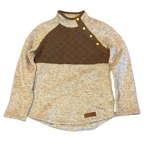 Marley Lilly Kids Youth Medium Sweater Two Tone Brown Asymmetrical Button Neck