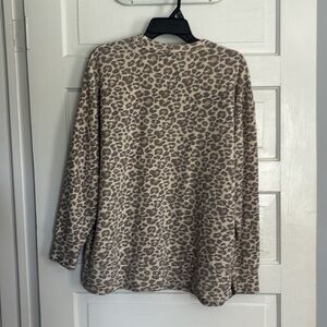 Stylish leopard print sweater by Marleylilly. Features a chic cream and brown pattern.