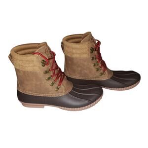Marleylilly Women’s Duck Boots Sz 9 Tan Brown Waterproof Faux Leather Monogram