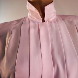 Marlis Vintage Blouse Sz 8 Pleated Front Long Sleeve Blush Pink Shoulder Pads